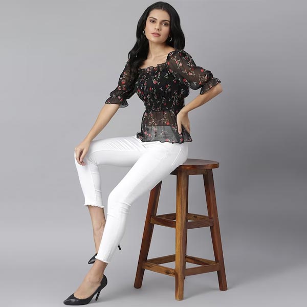 0 review(s) for "Black & Red Floral Georgette Cinched Waist Top"